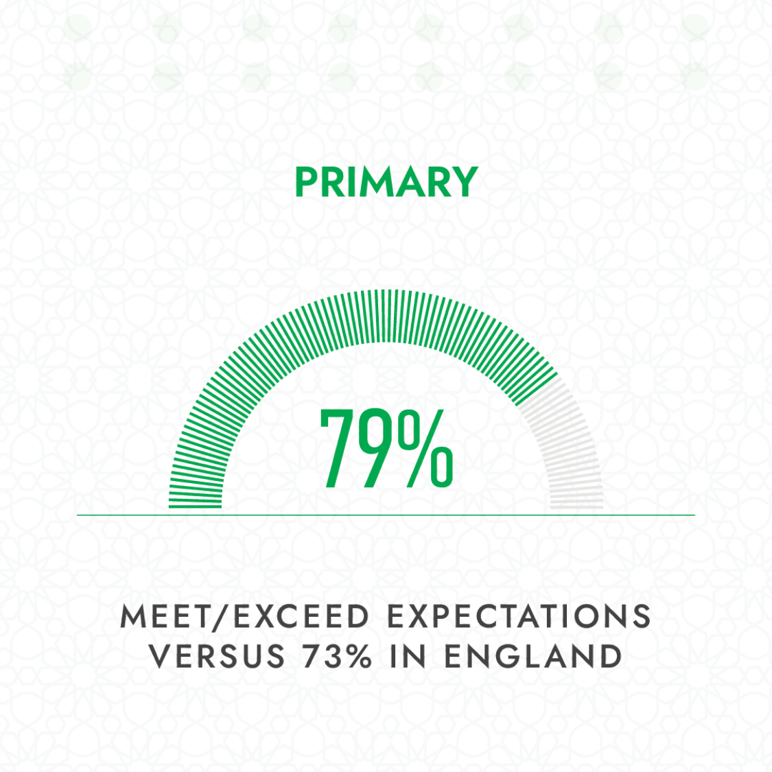 - “About 79% of pupils meet or exceed age-related expectations in mathematics compared with the England average of 73%, with 65% working at greater depth.”